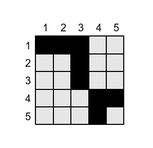 ~k~ dòng tiếp theo, dòng thứ ~i~ ghi chỉ số hàng và chỉ số cột của khu vui chơi thứ ~i~.