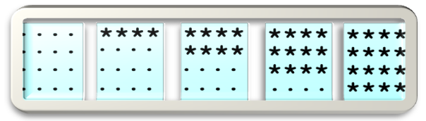 trong đó các dấu "*" thể hiện rèm cửa. Các trạng thái được đánh số từ 1 đến 5 theo thứ tự từ trái sang phải.